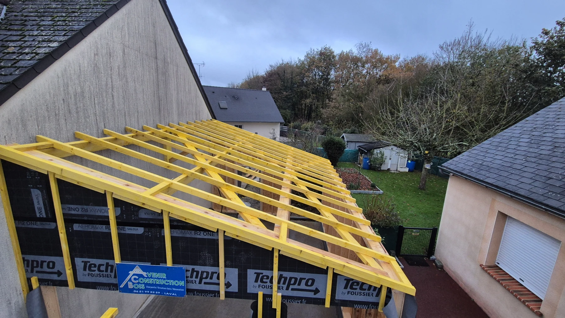 06 51 99 52 59Réalisation d'une extension à ossature en bois pour la création d'un garage ainsi que la pose des menuiseries