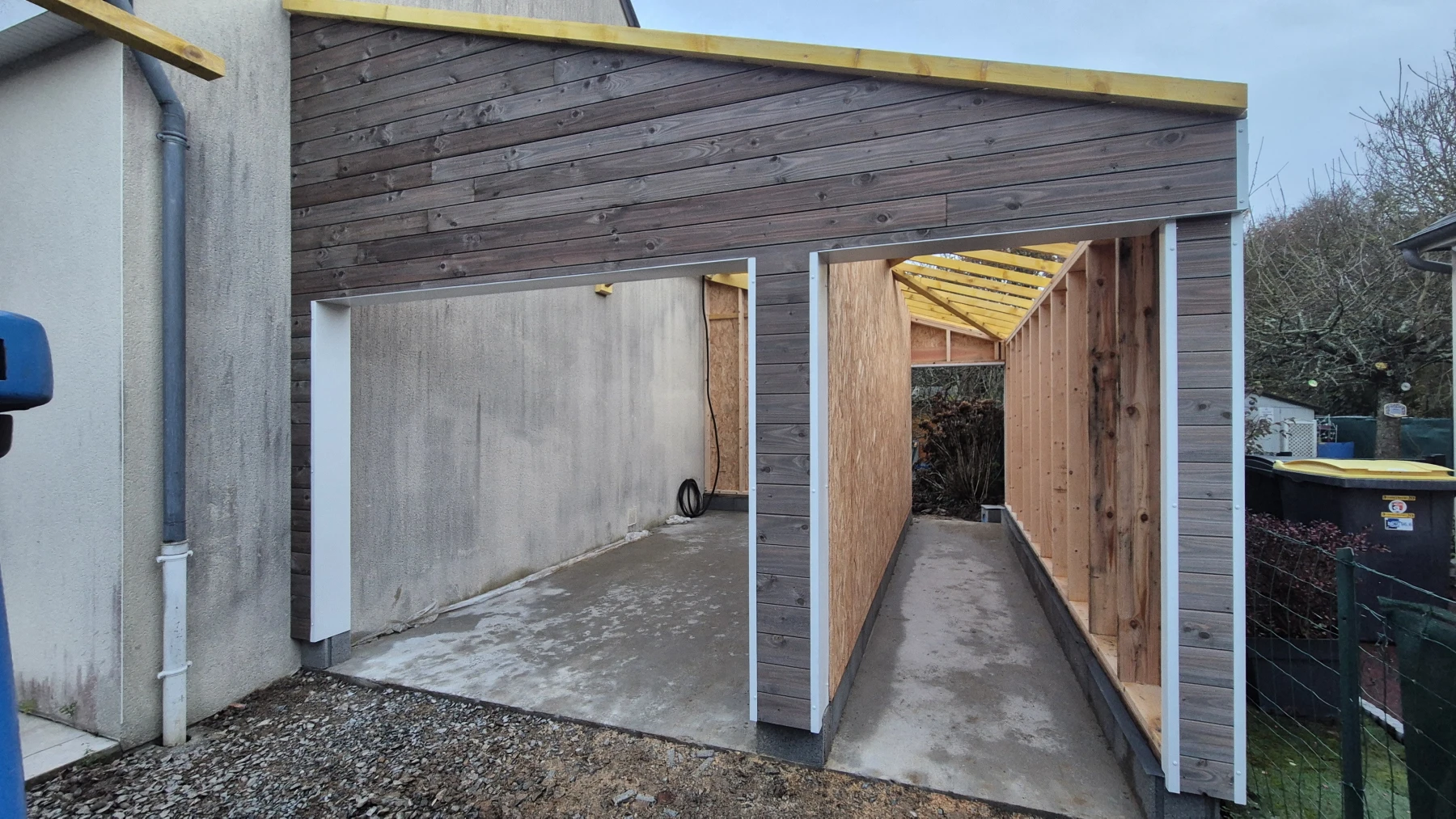 Réalisation d'une extension à ossature en bois pour la création d'un garage ainsi que la pose des menuiseries